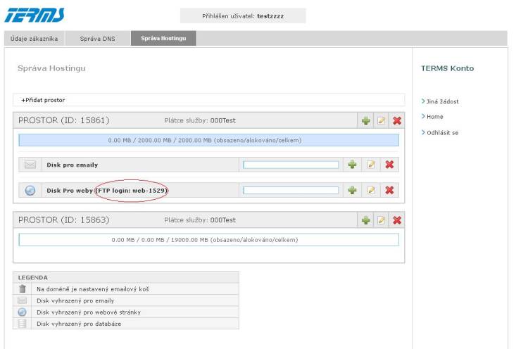 - Po cca 2min obnovte stránku a zobrazí se login k FTP