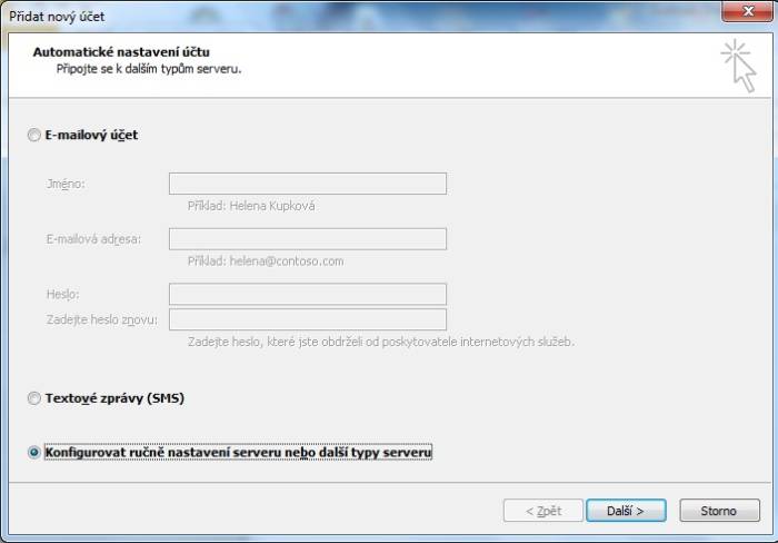 - Klikněte na Konfigurovat ručně nastavení serveru nebo další typy serveru