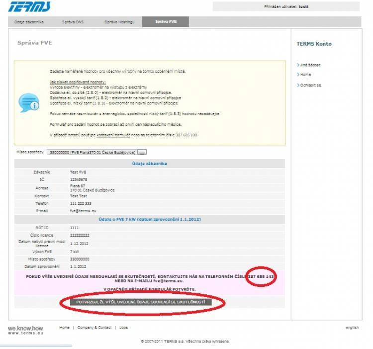 - Pokud údaje nesouhlasí, oznamte tuto skutečnost na tel.: 387 685 143 nebo na email : fve@terms.eu